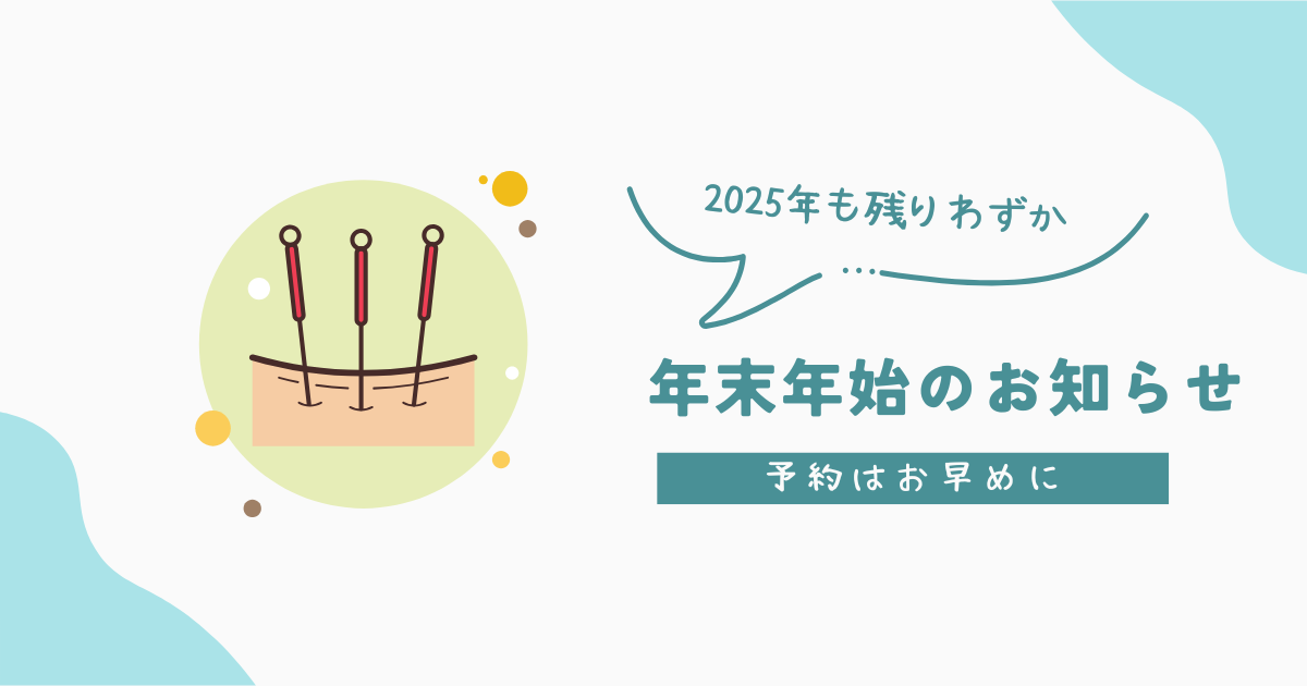 こんにちは。豊中 妊活鍼灸サロンルリエ鍼灸院です。2025年もあっという間にラスト1カ月となりました。年末は28日土曜日まで年始は5日から診療しております。何かと忙しい年末年始、インフルエンザなど感染症も大流行中のいま鍼とお灸で体を整えにきてくださいませ♪お灸(よもぎ)には浄化作用もありますので今年の厄の厄落としにも(^^)お待ちしております~♪鍼灸師 YUKA